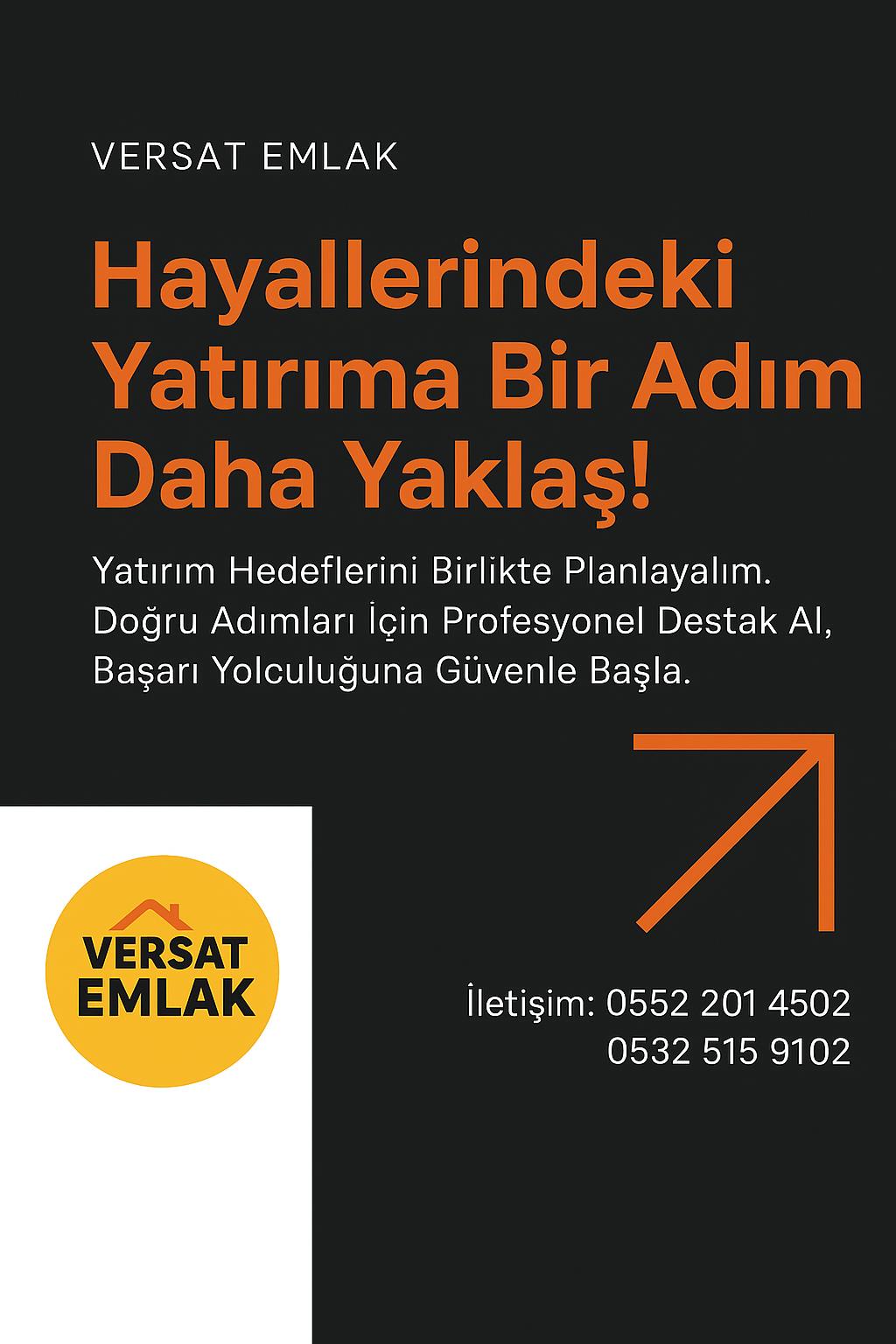 Versat Emlak, Sizlerin Hayatınıza Değer Katacak Bir Yatırım Yapmanızı Sağlamak İçin Burada. Eğer Siz De Hayallerinizdeki Eve ,İşyerine,Arsa Ve Tarlaya Adım Atmak İstiyorsanız, Bize Ulaşın,Size En Uygun Gayrimenkul Ve Diğer Seçenekleri Sunalım Ve Sizinle Birlikte Doğru Yatırımı Yapmanıza Yardımcı Olalım."